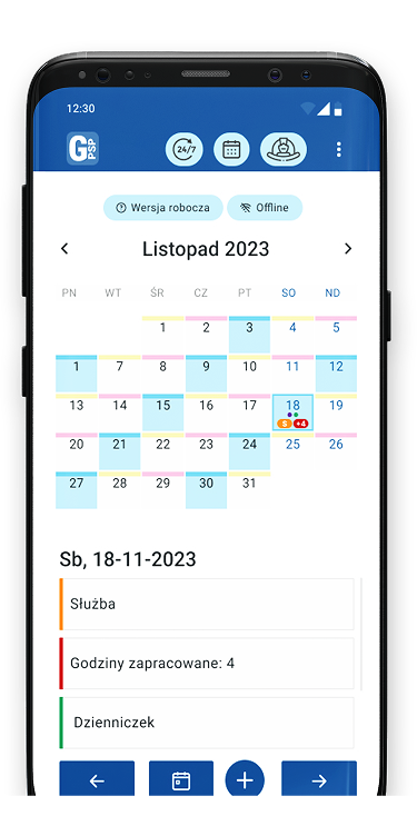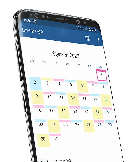 Korzystaj z aplikacji Android i iOS. Dowódca tworzy grafik dla całej jednostki przy użyciu aplikacji przeglądarkowej, a każdy strażak otrzymuje swój własny grafik na telefony z systemem Android i iOS.